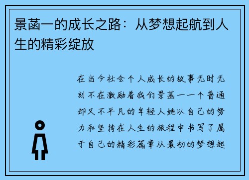 在新时代的浪潮中,青年们面临着前所未有的机遇与挑战。张帆,作为一名勇敢追梦的青年,他的奋斗故事生动地诠释了当代青年的拼搏精神与责任担当。本文将从四个方面探讨张帆的成长历程、奋斗经历、对社会的贡献以及他对后辈青年的影响,以展示他作为新时代青年榜样的重要性。通过张帆的故事,我们不仅能感受到个人奋斗带来的成就感,更能领悟到在快速变化的时代中,如何坚定理想、勇敢追梦的重要意义。 1、成长历程与背景 张帆...