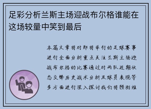 本文将聚焦于法国与意大利两国足球强队之间的友谊赛,探讨其精彩对决和深厚历史渊源。首先,我们将回顾法国和意大利足球的辉煌历程,分析两国在国际足坛的重要地位。接着,我们会深入讨论双方在友谊赛中的经典交锋,包括一些令人难忘的比赛瞬间。随后,文章将着重解析两国球队风格及战术特点,并探讨其背后的文化影响。最后,我们将展望未来,思考这一传统对抗如何继续影响两国足球的发展与交流。无论是过去的辉煌还是未来的期待,...